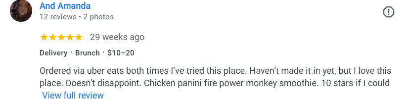Review overview from UberEats and Google.