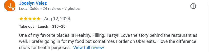 Explore our culinary creations and merchandise critiques on Uber eats and Google.